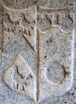 - ^ The pedigree of Courtenay of Upcott is confused in Vivian, p.246, showing Gertrude Courtenay (born in 1592 according to her ledger stone) as the sister of James Courtenay whose will was dated 1588, presumably James Courtenay "The Younger", whose ledger stone states he died in 1592
