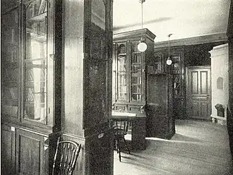 Before acquiring the current nation building (1825), the nation held its meetings either in the house of its inspector – the professor who had been appointed by the university to guard over the virtue and behaviour of the students of a particular nation – or in the home of one of its members. The steadily increasing size of the library forced the nation to start renting space in 1763, but as late as 1814, the protocol mentions a meeting in the home of the member "J. Almquist", i.e. the later notable writer Carl Jonas Love Almqvist.