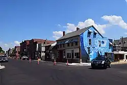 The period of significance for the district covers the years 1856 to 1919, but its historic commercial development occurred during the 1870s and 1880s. The buildings were constructed in brick and are largely two to three stories tall. There are also several single-story buildings and one that is four stories tall. The Italianate and the Queen Anne are dominant.[2] Nine of the buildings are major commercial blocks. In addition to the commercial buildings, there is the two-story, brick, former Fire Engine House Number 1 that faces south at the jog in the street. The buildings in the district are considered some of the best examples of late-19th-century commercial designs in the city.[2]