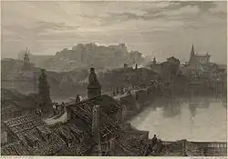 Miranda de Ebro most likely originated atop La Picota Hill as a military outpost during the Reconquista. However, it was not founded during this conflict but rather repopulated.[4] In 1099, Alfonso VI of Castile granted the city an important charter (fuero),[5] by which time it had already expanded from the hill to the river, and a bridge had even been built earlier. The Fuero de Miranda also mentions the existence of the city's first two districts:[6]
