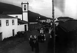 The history of Urzelina has been shaped by the events of 1 May 1808, when a volcanic eruption destroyed a great part of the settlement, and caused fear and panic in its populous.[3] It also resulted in the destruction of most of the arable lands, and plunged the island into a period of famine. Lava reached as far as the local parochial church, which was inundated with basaltic flows and brought into ruin. The bell-tower and belfry are the only remnants of the event.
