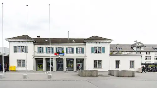 Uster is a railway station in the canton of Zurich, Switzerland, situated in the city of Uster and within fare zone 131 of the Zürcher Verkehrsverbund (ZVV).[1] The station is located on the Wallisellen to Uster and Rapperswil railway line.[2][3]