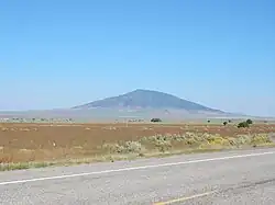 Ute Mountain is part of the Taos Mountains which are a subset of the Sangre de Cristo Mountains.[3] The isolated landmark is the highest point of the Cerro del Yuta Wilderness and Rio Grande del Norte National Monument which is administered by the Bureau of Land Management.[4] The remote mountain is situated 35 miles north of the town of Taos and four miles south of the New Mexico–Colorado border. Ute Mountain is a free-standing, dacitic, extinct Pliocene volcanic cone set within the Taos Plateau volcanic field.[8] Ute Mountain has a base diameter of five miles and topographic relief is significant as the summit rises 2,500 feet (760 meters) above the surrounding sagebrush-covered basalt plains.[2] The slopes of the mountain are covered with stands of pinyon pine, ponderosa pine, aspen and Douglas fir.[9] Precipitation runoff from the mountain drains to the Rio Grande which flows through a gorge along the western base of the mountain.