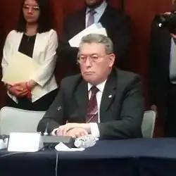 Víctor Manuel Galicia Ávila took protest as senator of the LXIII Legislature in February 2018.[2]