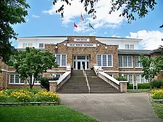 Valdese Elementary School, also known as the Old Rock School, is a historic school building located at Valdese, Burke County, North Carolina. It was built in 1922–1923, and is a two-story, fieldstone four square building with a hipped roof. It features a T-shaped clerestory above the auditorium space. It was constructed largely by Waldensian settlers from Northern Italy.[2]