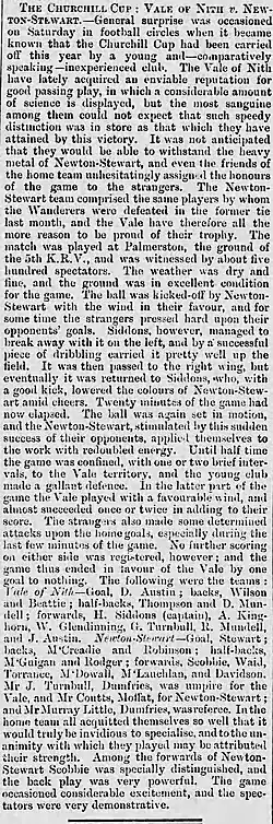 - ^ "Mid-Annandale v Vale o' Nith (Dumfries) - Churchill Cup - Second Round Tie". Glasgow Herald: 10. 24 December 1888.