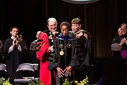 Valerie Sheares Ashby is an American chemist and university professor who currently serves as president of the University of Maryland, Baltimore County.[1] She was the Dean of Trinity College of Arts and Sciences at Duke University[2] from 2015 to 2022 and formerly chair of the chemistry department at the University of North Carolina at Chapel Hill from 2012 to 2015. With her research group, she holds ten patents.[3] On April 4, 2022, it was announced[4] that Ashby would assume the position of president of the University of Maryland, Baltimore County.