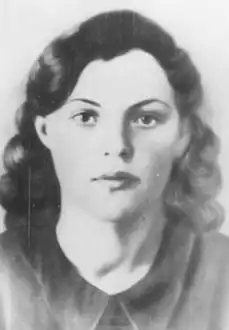 Valeriya Osipovna Gnarovskaya (Russian: Вале́рия О́сиповна Гнаро́вская; 18 October 1923 – 23 September 1943) was a combat medic in the 907th Rifle Regiment who fought on the Stalingrad Front in World War II. On 23 September 1943, when a German tank broke through the Soviet line of defence where she was treating wounded soldiers, she threw herself under the tank with a bag of grenades, killing herself but repulsing the German counterattack. She was posthumously awarded the title Hero of the Soviet Union on 3 June 1944.[1]