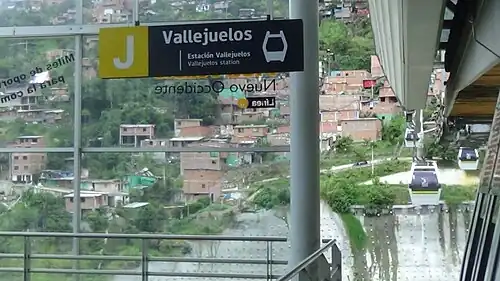 Vallejuelos is a metrocable station on line J of the Medellín Metro.[1] This station covers communes 13 (San Javier) and 7 (Robledo).