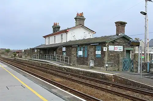 Valley railway station (Welsh: Gorsaf reilffordd y Fali) is a railway station that serves the village of Valley in Anglesey, Wales. It is the last station before the western terminus of the North Wales Coast Line at Holyhead. It also serves the nearby RAF base.