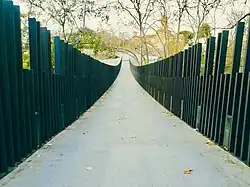Finally, on the approach to the southern end of the park, is the Pont de la Unió, a viaduct inaugurated on February 19, 2010, in the presence of the then mayor, Pere Navarro i Morera. It is a footbridge that connects the Can Palet neighborhood with the so-called 20th century neighborhood, between Morella street and the Rubí road. It consists of a 107 m long frame and its name was chosen by the students of the schools President Salvans, Pau Vila, Andersen and Sagrat Cor de Jesús.[29]