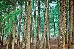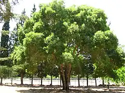The park, one of the largest in Catalonia,[42] contains a great variety of plants and trees, among which the most important tree species are stone pines —29.2%—, plane trees —22.75%— and holm oaks —29.2%—. To a lesser extent, false asacias, mediterranean cypresses, olive and ash trees[43] can be found. Other species that can be found are poplars, blue gum, laurels, tulip trees, chrerry plum trees, maples or lodogno trees.[44] Regarding smaller varieties of plants, throughout the park you can appreciate honeysuckles, common ivy, purple morning glory, common barberries, rosemary, mock oranges or abelias.[44]
