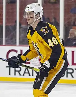 ![]() Puustinen playing with the Wilkes-Barre/Scranton Penguins in the 2023 AHL Outdoor Classic | |||
