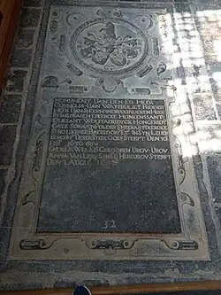 Cornelis married Maria van Campen, and they produced five children, including Cornelia, Gillis, and Cornelis. Cornelia married David van der Nisse, Heer van Nisse, who later served as Burgemeester of Goes. Gillis and Cornelis followed in their father's footsteps as councilmen and mayors of Goes, ridders, and serving on the Rekenkamer. Cornelis married Anna van Liere, they produced four children[6] and share a grave in the Great Church of Mary Magdalene in Goes.