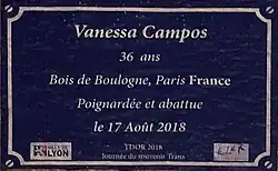 - ^ "Hommage à Vanesa Campos, prostituée trans tuée il y a un an". www.20minutes.fr (in French). 18 August 2019. Retrieved 9 November 2020.