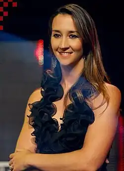 In January 2012, she gave birth to her first child.[8] On 28 and 29 March 2011, her company D1 Dance performed at the Choreographers Festival in New York, at the Manhattan Movement and Arts Center, organized by the R.Evolución Latina collective.[9] The same year, she directed the musical TuLima at the Teatro Peruano Japonés, also with a special performance in the Plaza de Armas of Lima.[10][11]