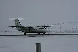 The wooden runway was pillaged by locals to accumulate building materials for reconstruction.[8] The Norwegian Armed Forces established itself in Vardø in the mid-1950s. The airport was renovated; a terminal was built consisting of two simple barracks, one used as a passenger terminal and the other as a tower, consisting of a glass addition on the roof. The 1,100-by-80-meter (3,610 by 260 ft) gravel runway received portable runway lights. The Royal Norwegian Air Force served the airport with de Havilland Canada Twin Otter and Shorts Skyvan aircraft to transport military personnel.[7]