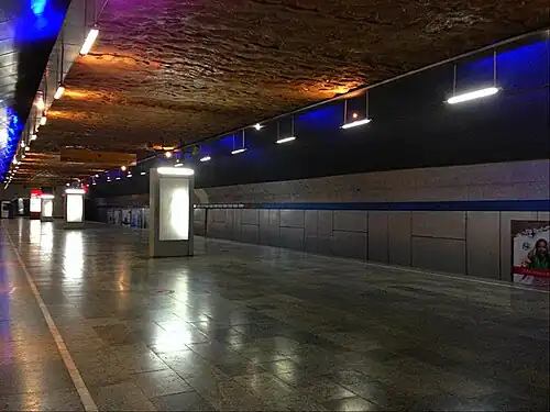 Varketili (Georgian: ვარკეთილი) is a station of the Tbilisi Metro on the Akhmeteli–Varketili Line. It opened in 1981 and was renovated in 2007 and 2017 and is in progress of yet another renovation in 2023. Varketili is the last station on line 1 and is the nearest to the airport.