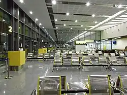 Terminal 1 (closed) was extended several times over the years. The departures area had 21 check-in counters and six security checkpoints. In the terminal there were various outlets: cafes, fast food restaurants, currency exchange, and duty-free shops. There were ten boarding gates. The arrivals area had two luggage belts, as well as currency exchange and a tax-free shop. Terminal 1 still has a VIP room and business lounge. In 2010, the VIP room was renovated. As of 2014, all flights, including no-frills, are handled at Terminal 2. Hence, the old terminal is closed except the VIP area.