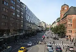 In its southern end it is connected to the old town Gamla Stan by the bridge Vasabron, from where it stretches north to the public square Norra Bantorget. It passes in front of the Stockholm Central Station and is intercepted by Kungsgatan.