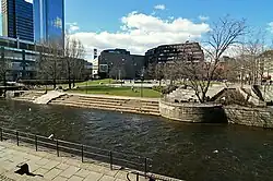 Vaterland is a neighborhood in Oslo, Norway. It is located north of the tracks at Oslo Central Station, between Jernbanetorget, Storgata and Akerselva river. The area features Oslo Central Station and Oslo Bus Terminal, the shopping centers Oslo City and Byporten, Galleri Oslo, Radisson Blu Plaza Hotel, the concert arena Oslo Spektrum and Postgirobygget. Vaterland Park lies along the Aker River.