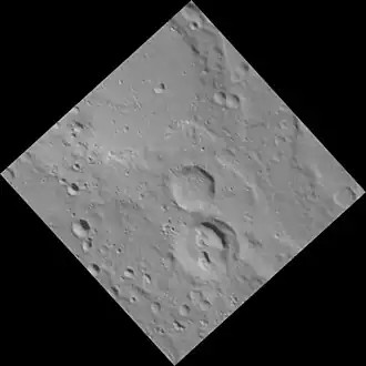 The scarps of Altair Rupes are to the southeast of Vazov crater, as is the crater Codesido.