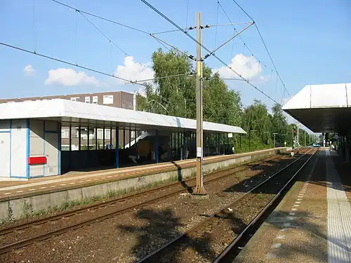 Veenendaal West is a railway station located in Veenendaal, Netherlands. The station was opened in 1981, and is located on the Kesteren–Amersfoort railway.[1] The train services are operated by Nederlandse Spoorwegen.[2]