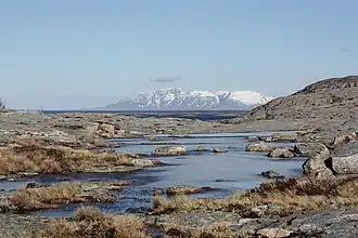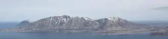 The southwestern part of the island is mountainous, with the highest point being the 803-metre (2,635 ft) tall Trollvasstinden. The rest of the island is rather flat and marshy.[2]