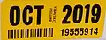 Initially, all decals expired on February 28 of the following year. When monthly staggered registration commenced in 1979, longer decals were introduced displaying the month of expiration; all such decals initially expired at the end of the month displayed. Daily registration commenced in 1993, with an additional decal introduced displaying the number of the day on which the month decal expired.