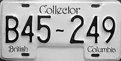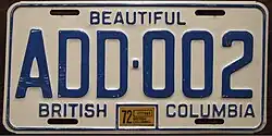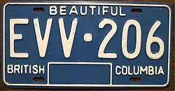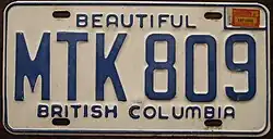 3. ^ a b Tanner, Eric N. "British Columbia Passenger License Plates". allaboutlicenseplates.com. Retrieved November 19, 2020.