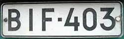 - 1950: Annual plates were no longer issued. The standard registration number consisted of two letters, a dash and a (maximum) three-digit number, embossed in white on a black background. The first letter was the provincial designation.