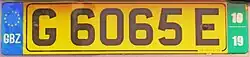 ![]() Gibraltarian regular legal standard number plate. | |