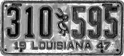 - ^ a b c Tanner, Eric N. "Louisiana Passenger License Plates". allaboutlicenseplates.com. Retrieved November 20, 2020.
