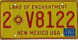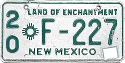 2. ^ a b c d e Tanner, Eric N. "New Mexico Passenger License Plates". allaboutlicenseplates.com. Retrieved November 11, 2020.