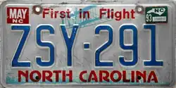 - ^ a b c d e Tanner, Eric N. "North Carolina Passenger License Plates". allaboutlicenseplates.com. Retrieved November 19, 2020.