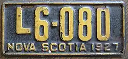 - ^ a b c Tanner, Eric N. "Nova Scotia Passenger License Plates". allaboutlicenseplates.com. Retrieved November 17, 2020.