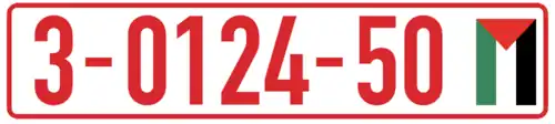 - 3: Gaza Strip, for vehicles registered after 1995 (North Gaza, Gaza, Central Gaza, Khan Yunis and Rafah Governorates) — the initial "3" has been kept after the introduction of the present license plate system in 2012