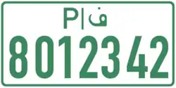 Private vehicles had white plates with green numbers, the numbers have seven digits, the first shows the district (governorate) of the registration: