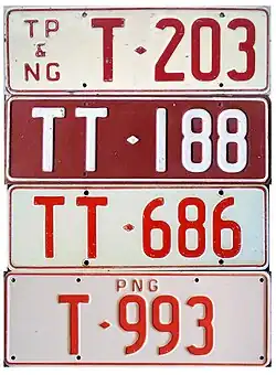 From 1884 to 1914, the area known today as New Guinea was a German protectorate called German New Guinea (Deutsch Neuguinea). Motor vehicles in use there displayed the German registration plates of the era. From 1914 to 1949, Papua New Guinea was divided into two territories; The Territory of Papua and The Territory of New Guinea. Plates with TP and TNG respectively were used. Following the administrative union of the two territories in 1949, plates with TP&NG were introduced. Following the Independence from Australia in 1973, modified plates were introduced. In 1975, a series of new plates were introduced. Older plates were exchanged upon renewal of vehicle registration in 1975-1976.