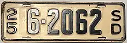 - ^ a b c Tanner, Eric N. "South Dakota Passenger License Plates". allaboutlicenseplates.com. Retrieved November 11, 2020.