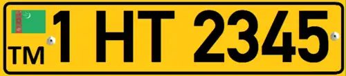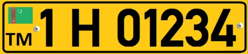 Plates issued to foreign nationals or companies residing in Turkmenistan resemble closely those found in Azerbaijan. They feature black alphanumerics rendered in DIN 1451 on a yellow background, and take the form of: #H ##### (e.g. 2H 50035).