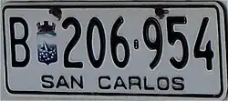 Maldonado Department—San Carlos city | B 212-345 | black on white | "SAN CARLOS" at bottom; first number signifies city |