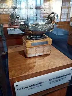 The Veli-Pekka Ketola trophy (Finnish: Veli-Pekka Ketola -palkinto) is a Finnish ice hockey trophy awarded by the Liiga to the player who scores the most points during regular season play. It was first awarded to Henry Saleva of Kärpät in the 1977–78 SM-liiga season. The trophy was renamed in honour of Veli-Pekka Ketola in 1995.