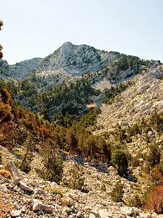 Veliki Kabao (Serbian Cyrillic: Велики Кабао, pronounced [velikiː kǎbaɔ]), also known as Zubački Kabao (Serbian Cyrillic: Зубачки Кабао), or simply Mount Orjen, is a mountain peak on the border of Bosnia and Herzegovina and Montenegro. At 1,894 m, it is the highest summit of the Orjen Range in the Dinaric Alps. It is also the highest peak of the eastern Adriatic.
