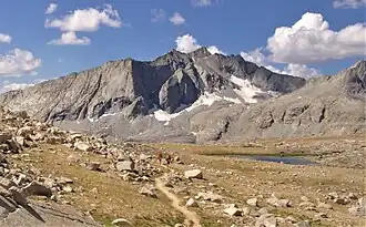 Vennacher Needle is a 12,995-foot-elevation (3,961-meter) mountain summit located in Kings Canyon National Park, in Fresno County of northern California, United States.[3] It is situated west of the crest of the Sierra Nevada mountain range, and 1.4 miles (2.3 km) north of Mount Ruskin.[1] Topographic relief is significant as the east aspect rises nearly 2,300 feet (700 meters) above the Upper Basin of South Fork Kings River in one mile. The John Muir Trail, which passes one mile to the east of this mountain, provides one possible approach option. This mountain's name has been officially adopted by the United States Board on Geographic Names.[3]