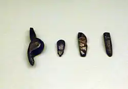 The Venus figurines of Petersfels are several small female statuettes from the Upper Paleolithic era, carved from jet lignite. The tallest figurine is called the Venus of Engen.[1] The figurines were discovered in the Petersfels caves near Engen, Baden-Württemberg, excavated in 1927–1932 by Eduard Peters und Volker Toepfer and then in 1974–1976 and 1978 by Gerd Albrecht.[2] They stand between 1.5 and 4 cm tall and are about 15,000 to 11,500 years old, created during the Magdalenian era. They are housed in the Museums of Freiburg im Breisgau and Engen.