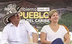 Alcocer was characterized by being potentially active during Gustavo Petro's presidential campaign,[24] which was unprecedented, since traditionally no spouse of a political candidate in the history of Colombia had carried out politics as a couple along with her husband, which allowed her to obtain consistent leadership as well as a positive image from the female population towards their husband.[25][26]