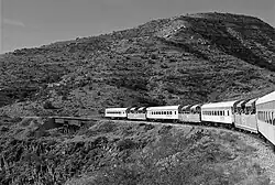 David L. Durbano bought the branch line in 1988.[2] Passenger service between Clarkdale at milepost 38 and Perkinsville at milepost 18, resumed in 1990 under the name Verde Canyon Railroad.[3] Milepost 0 of the AZCR is at Drake, where the line meets the BNSF Railway system.[4] The AZCR track to Drake is still used for hauling freight even though the excursion line stops at Perkinsville.[5]