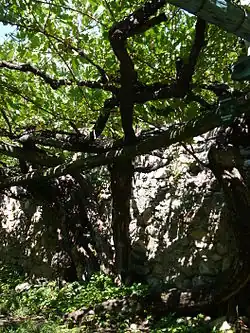 While ampelographer doubt the details of that origin story, today the Katzenzungen Versoaln vine is considered to be one of the oldest and largest vines in the world. Dated by Martin Worbes of the University of Göttingen in Germany to be at least 350 years old, the vine has been measured to cover a length of 350 square metres (3,800 sq ft).[1] Among the few grapevines in the world that are older than the Katzenzungen vine is the 400+ year old Žametovka vine growing in the Slovenian town of Maribor.[2][3]