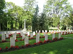 This cemetery is registered by the Commonwealth War Graves Commission as "Oslo Western Civil Cemetery". Plot 60 contains war graves of 101 British Commonwealth service personnel of World War II. Most were airmen shot down raiding the occupied Oslo Airport at Fornebu. Most of the others were killed in air crashes during Allied landings, 43 lives being lost on Liberation Day alone (10 May 1945).[4]